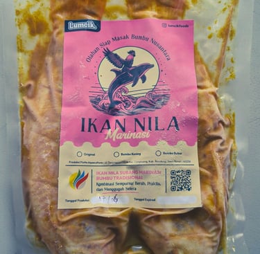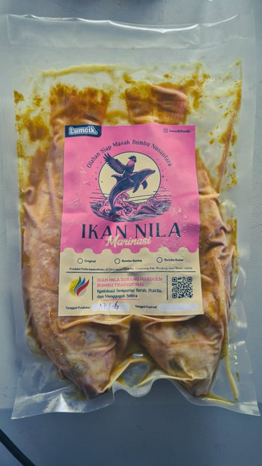 Ikan Marinasi Lumcik. dibuat dari ikan nila segar terbaik yang berasal dari kolam PixMe Aquaculture dan dirawat oleh tangan kami sendiri, dikombinasikan dengan bumbu tradisional khas cita rasa Nusantara dipetik dari kebun petani lokal dengan dipilih sesuai standar kualitas terbaik, menghadirkan olahan lezat yang siap masak dan dihidangkan di meja makan keluarga anda.