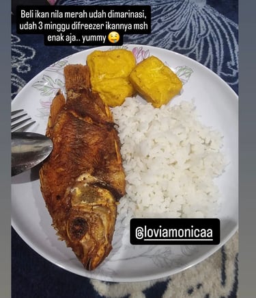 Beli ikan nila merah udah dimarinasi, udah 3 minggu difreezer ikannya msh enak aja.. yummy