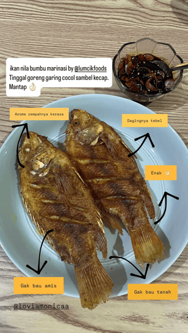 Ikan nila bumbu marinasi by @lumcikfoods tinggal goreng garing cocol sambel kecap. Mantap